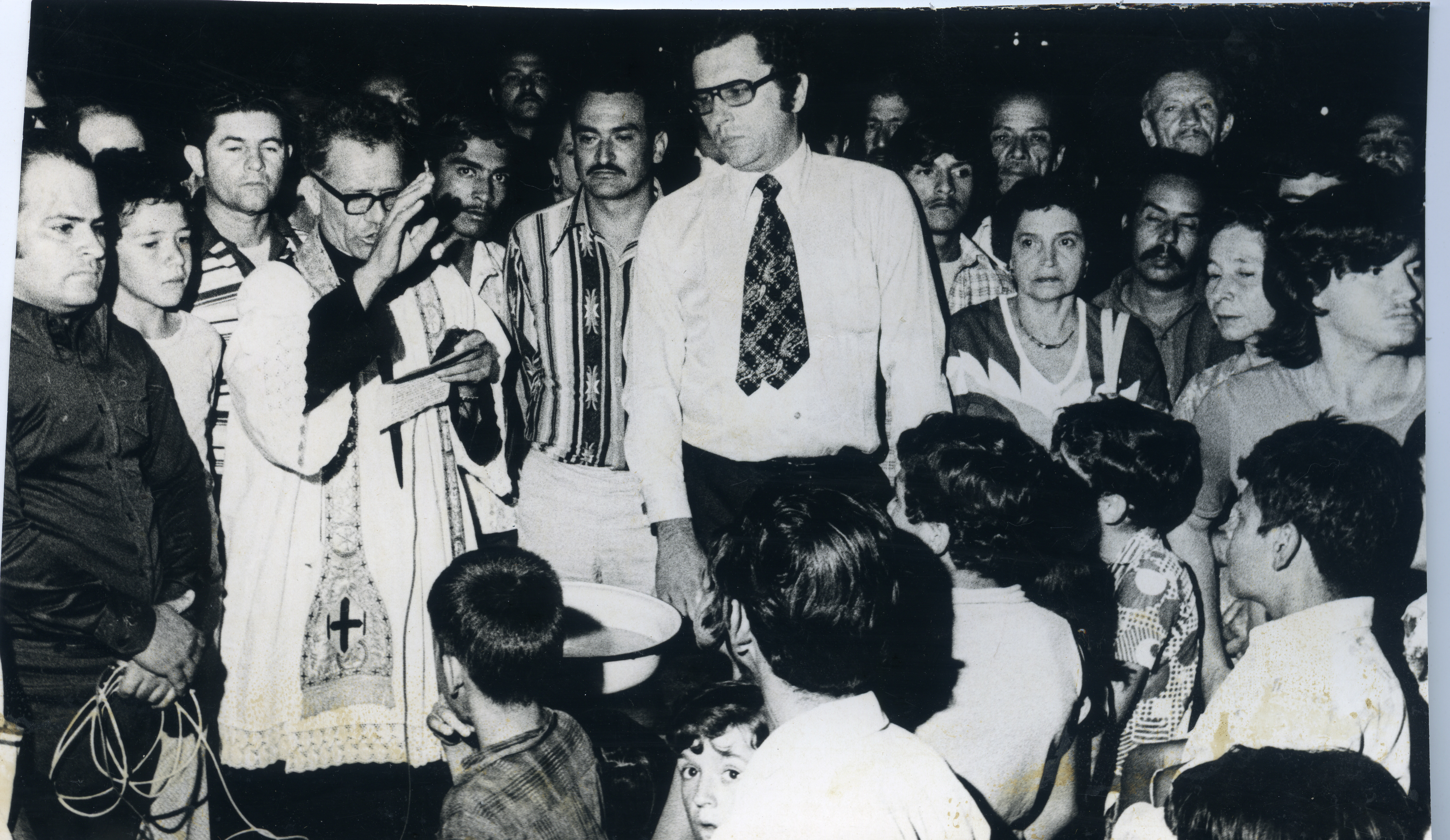 En la fotografía podemos observar a Carlos Holguín Sardi presenciando una eucaristía, junto a algunos vallecaucanos.