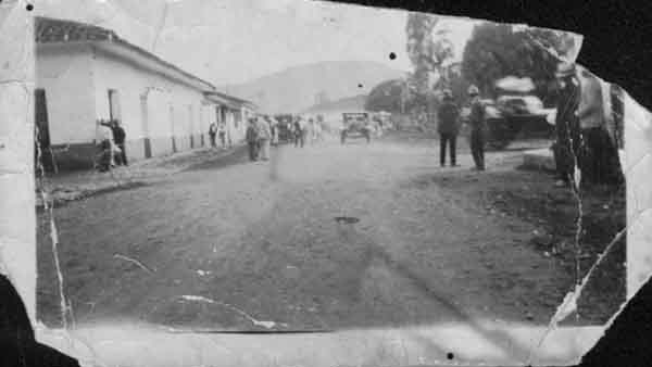 Es común ver en nuestos pueblos a los amigos caharlando parados en las calles y esquinas. Yotoco, 1930.
