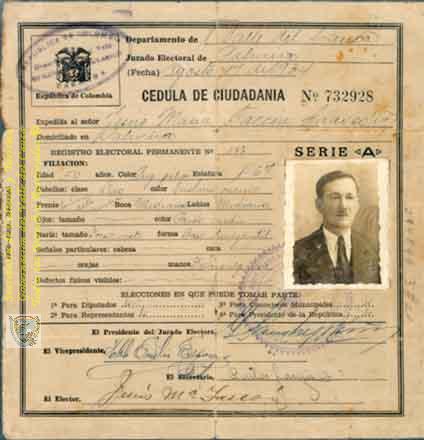 Cédula de Jesús María Tascón, Palmira, 1934.