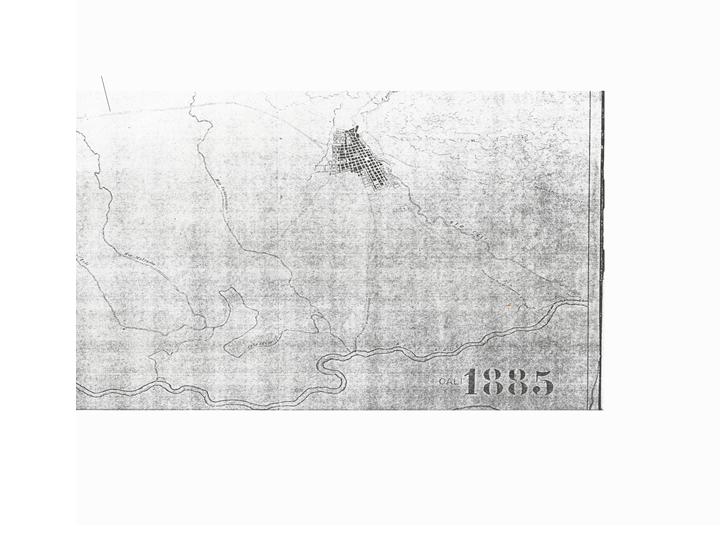 Mapa que indica con color negro la expansión de la ciudad en 1885. Santiago de Cali, 1885.