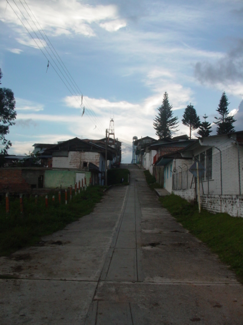 El Cairo, Valle del Cauca. Fundado en 1920, por Pedro Arango y otros. Nombres: Las Vueltas, Haceldama. Municipio desde 1947. Economía importante en agricultura, caficultura, etc. Observamos en la imagen, calle que sale a la iglesia y al parque principal