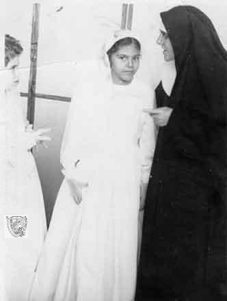 Lucy Arias, celebrando el Sacramento de la primera comunión. Cartago, 1.954