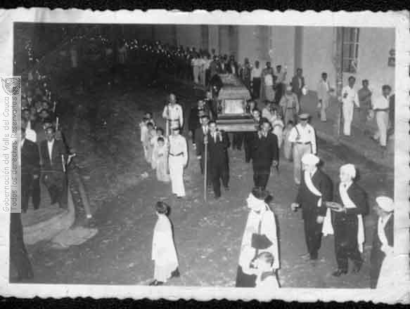 Procesión del Santo Sepulcro en Semana Santa. Bugalagrande. C. 1952