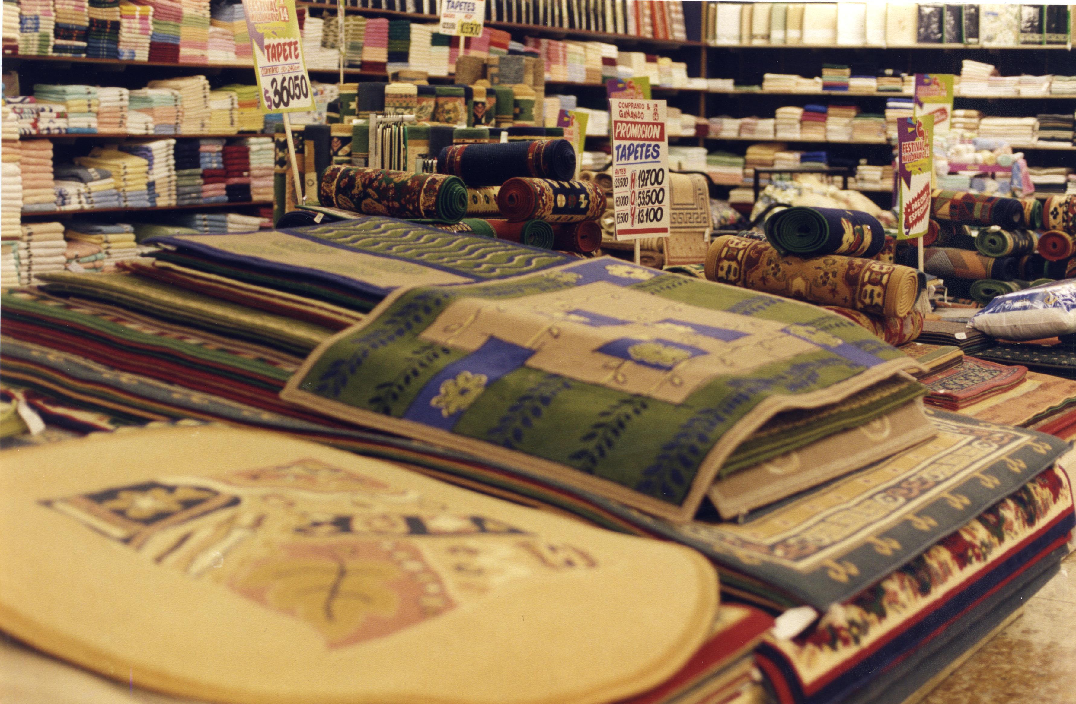 Almacenes la 14 fue fundada en Cali en 1964 por Abel Cardona Franco en la calle 14 del centro de la ciudad de ahí el origen de su nombre siendo originalmente una cacharrería. Su oferta comercial se desarrollaba a través de formatos de gran superficie y de tiendas de cercanía. En la gráfica se aprecia interior de la 14, pasillos comerciales. En la grafica se aprecia espacio con tapetes del almacen de la 14 de Calima