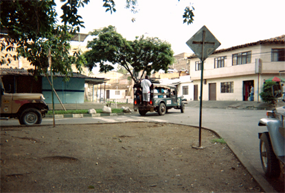 Gómez Ocampo, N. (2005). Se observan camperos de transporte público transitando en una calle del barrio Meléndez. Santiago de Cali: Biblioteca Departamental Jorge Garces Borrero.