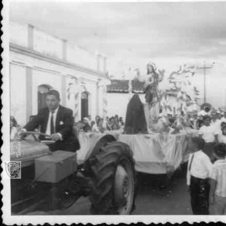 La procesión del corazón de Jesús, pasando por el parque principal. Guacarí. C. 1970.
