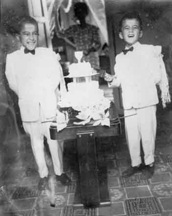 Primera Comunión de Hugo Alberto Espinosa Vera y Jairo Alfonso Espinosa Vera.Fotografía tomada en La Cumbre, cabecera en la sala de la casa paterna. 1965.