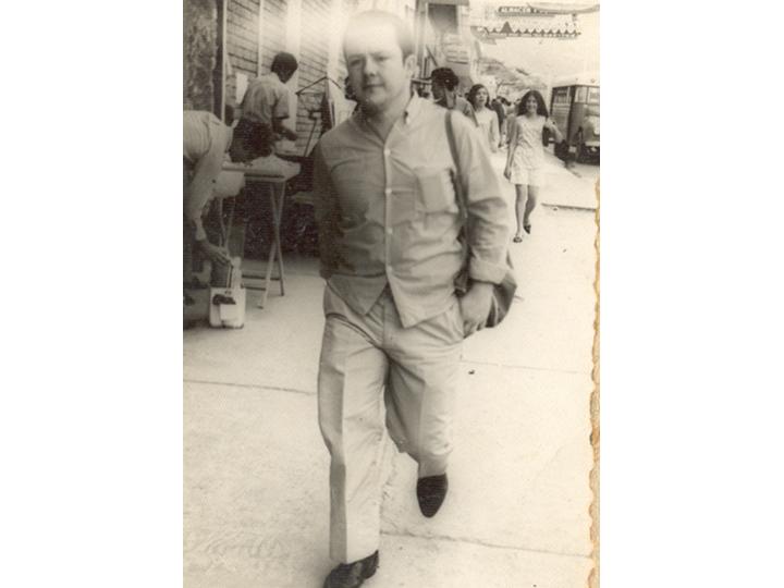 Efraín Caicedo caminando por las calles céntricas del municipio. Santiago de cali, 13-02-1953