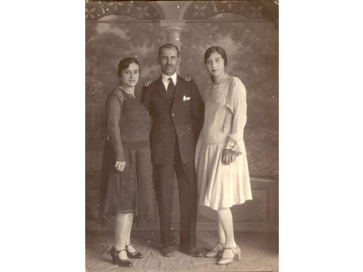 Isabel Caldas de Guerrero, Carlos Guerrero e hija. Foto estudio. Santiago de Cali, 1930.