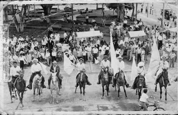 Cabalgata durante las fiestas municipales con la participación de campesinos de los Corregimientos de El Retiro y San Isidro. Pradera, 1960.