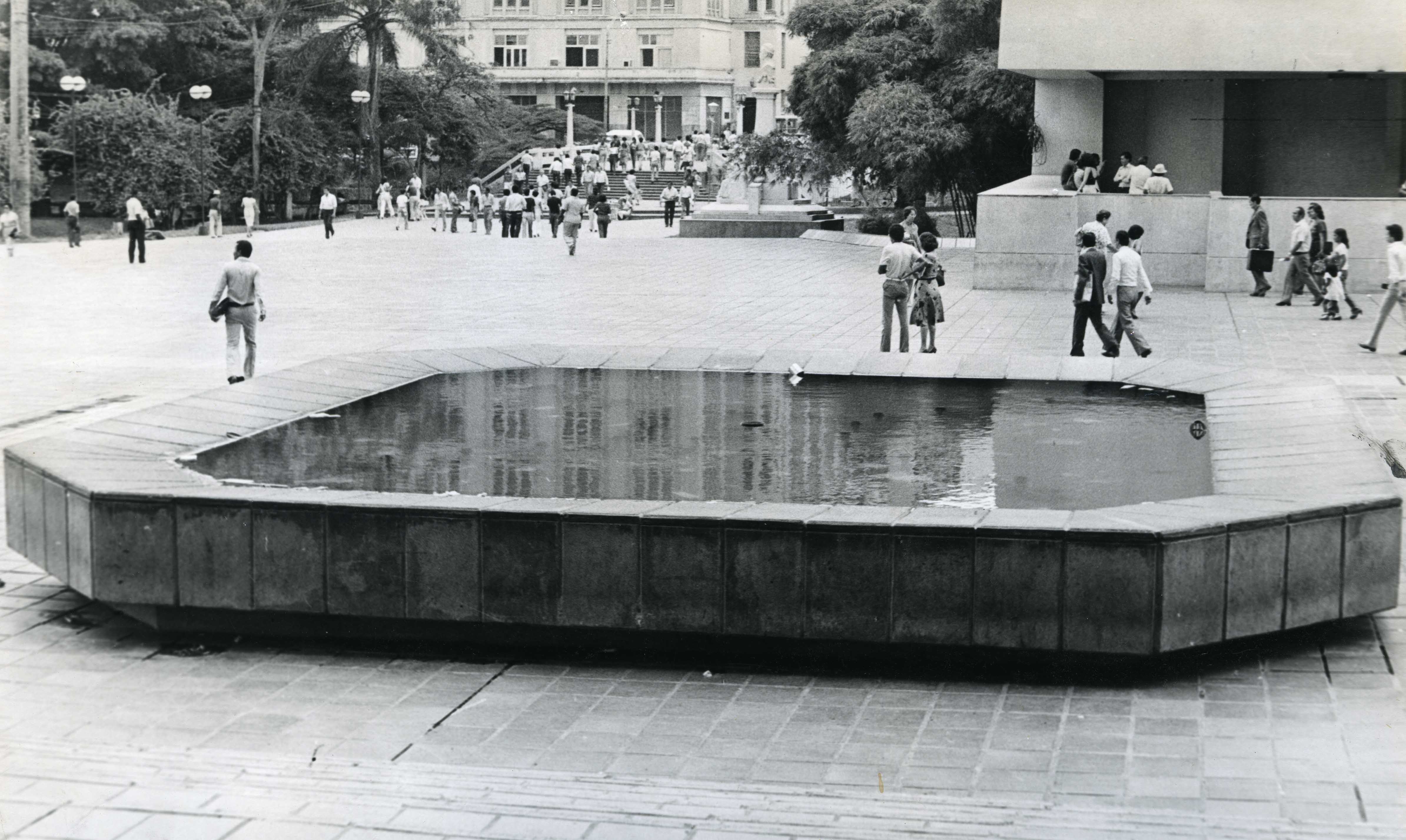 López, L. (1900). Fuente de agua ubicada en la plazoleta del CAM. Santiago de Cali: Biblioteca Departamental Jorge Garcés Borrero.