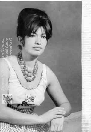 Olga María Barrera, luciendo un collar artesanal. Cali,1961.
