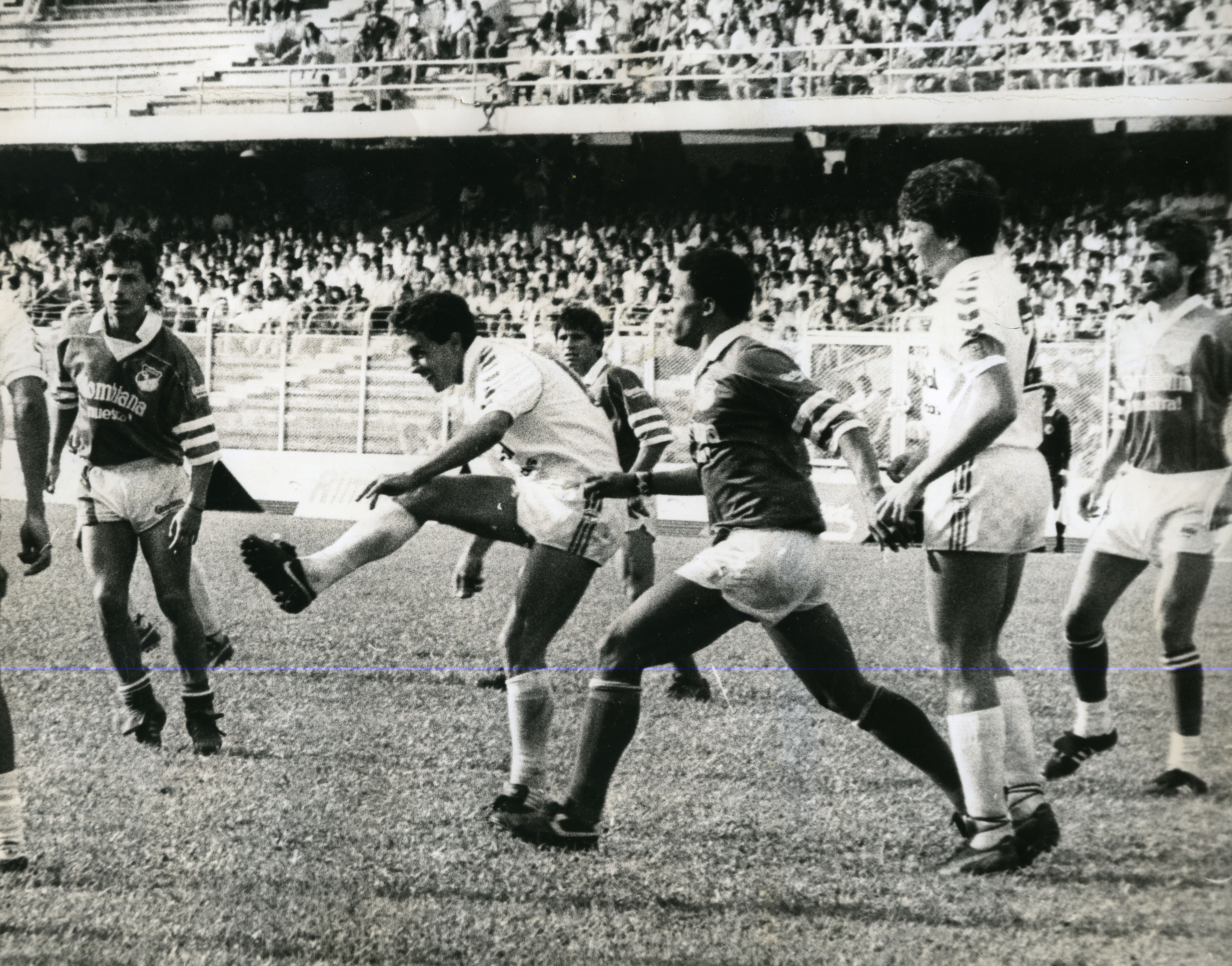 Partido entre los equipos de fútbol, Deportivo Cali vs Caldas, realizado en el Estadio Olímpico Pascual Guerrero. El partido culminó 5 - 2 a favor del Cali. Se aprecia jugadores del Caleños y del Caldas en escena durante el partido