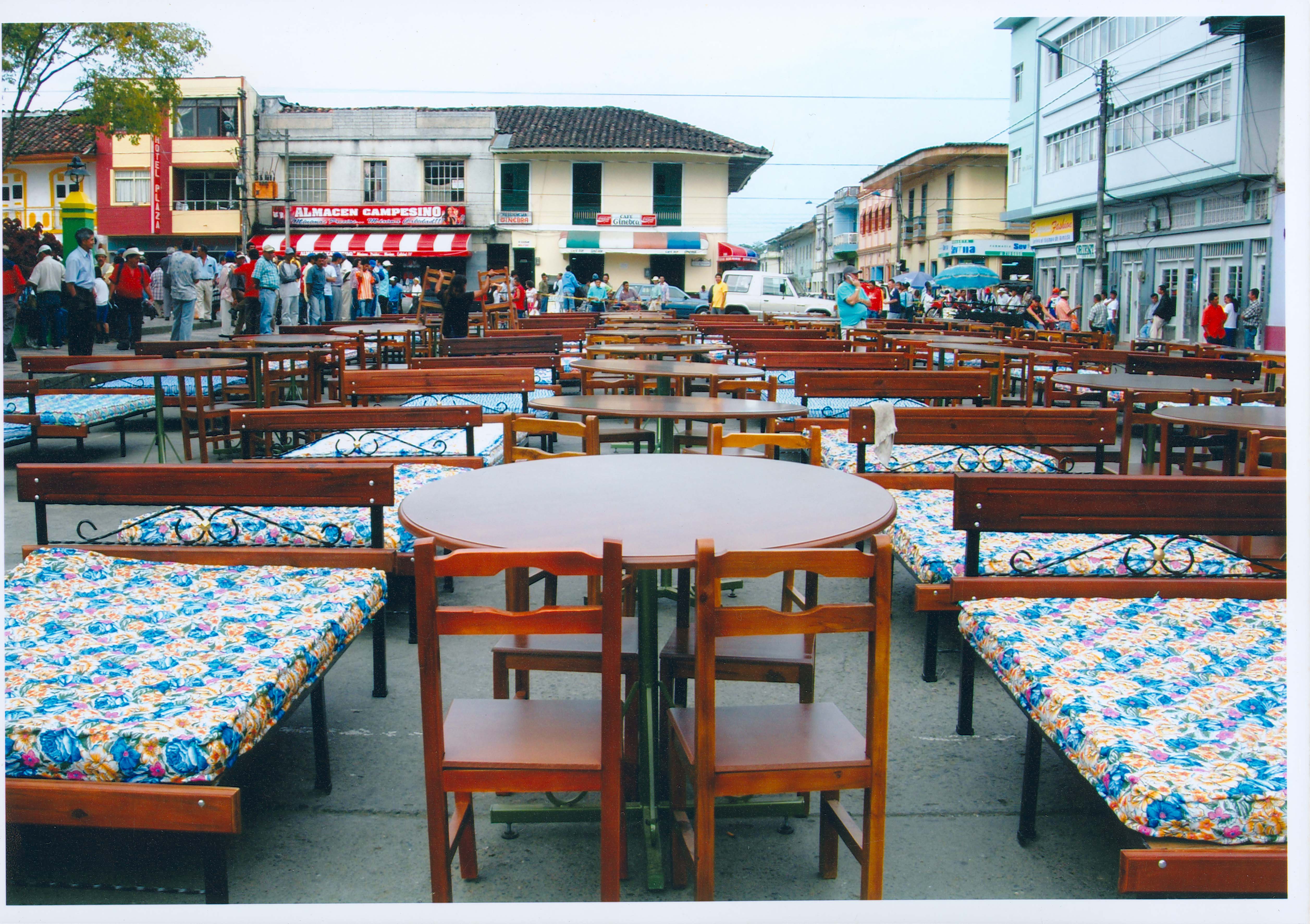 Sevilla, Valle del Cauca. Fundado en 1903, por Eraclio Uribe y Colonos antioqueños y caldenses. Nombres: San Luis. Municipio desde 1914. Economía importante en agricultura, caficultura, ganadería, comercio, minería, entre otros. Atractivo turístico: Basílica San Luis Gonzaga, Café Casablanca, fincas cafeteras. Observamos en la imagen, exhibición de muebles fabricados en el taller de carpintería realizado en la Casa de la Mujer