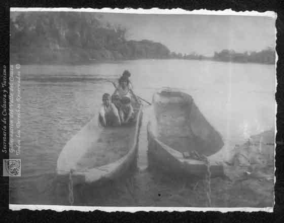 Alfredo Tascón Héctor Marino y Carmen Libia de la Cruz, de paseo en balsa por el río, Paso Moreno