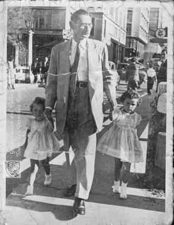 Eberaldo Múnevar e hijas, disfrutando de un día soleado. Santiago de Cali, C. 1.950