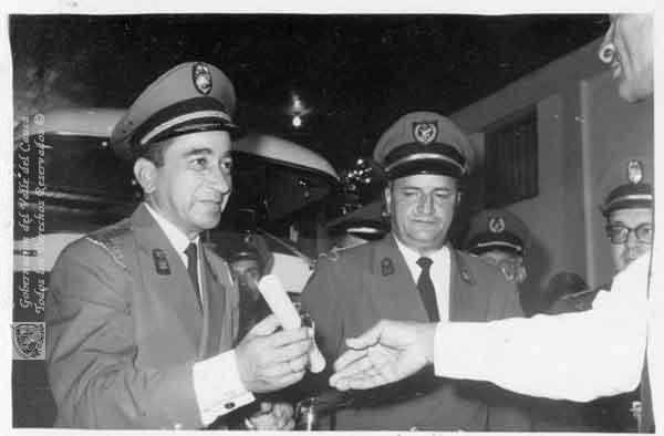 Ceremonia de Promoción de aspirantes a bomberos, estación central. Santiago de Cali, C. 1.960