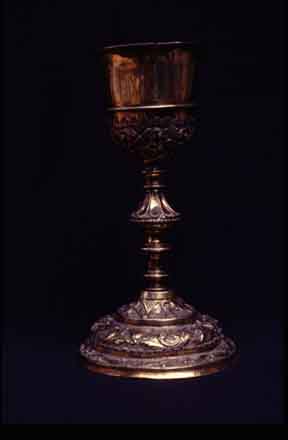 Cáliz en plata dorada y repujada. Convento San Joaquín y Museo Religioso. Cali, C. 1995