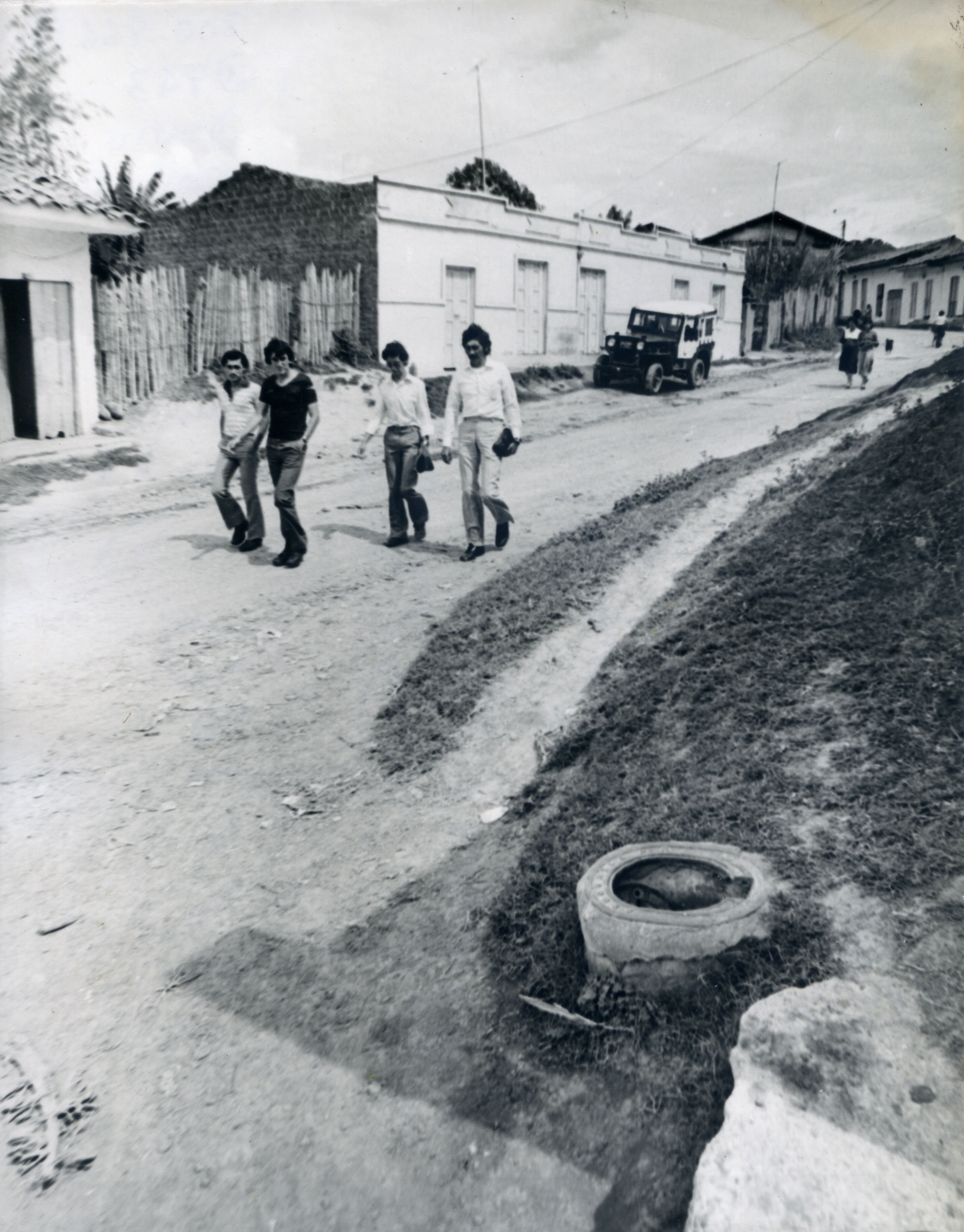 Calle sin pavimentar en el municipio de El Dovio y transeúntes.