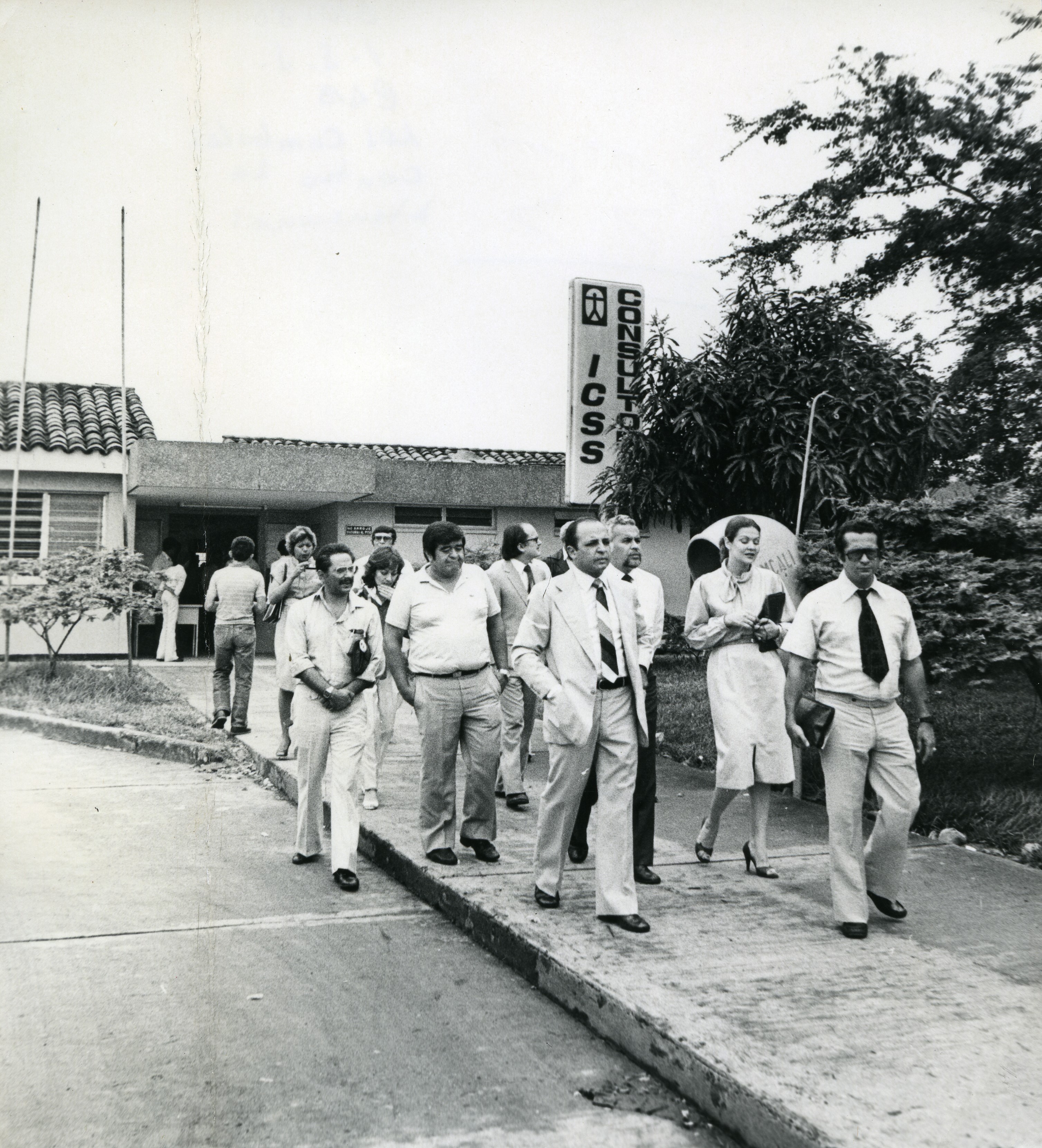 Personas saliendo de recorrido por el Centro de Atención Básico del Instituto de Seguros Social los Cambulos