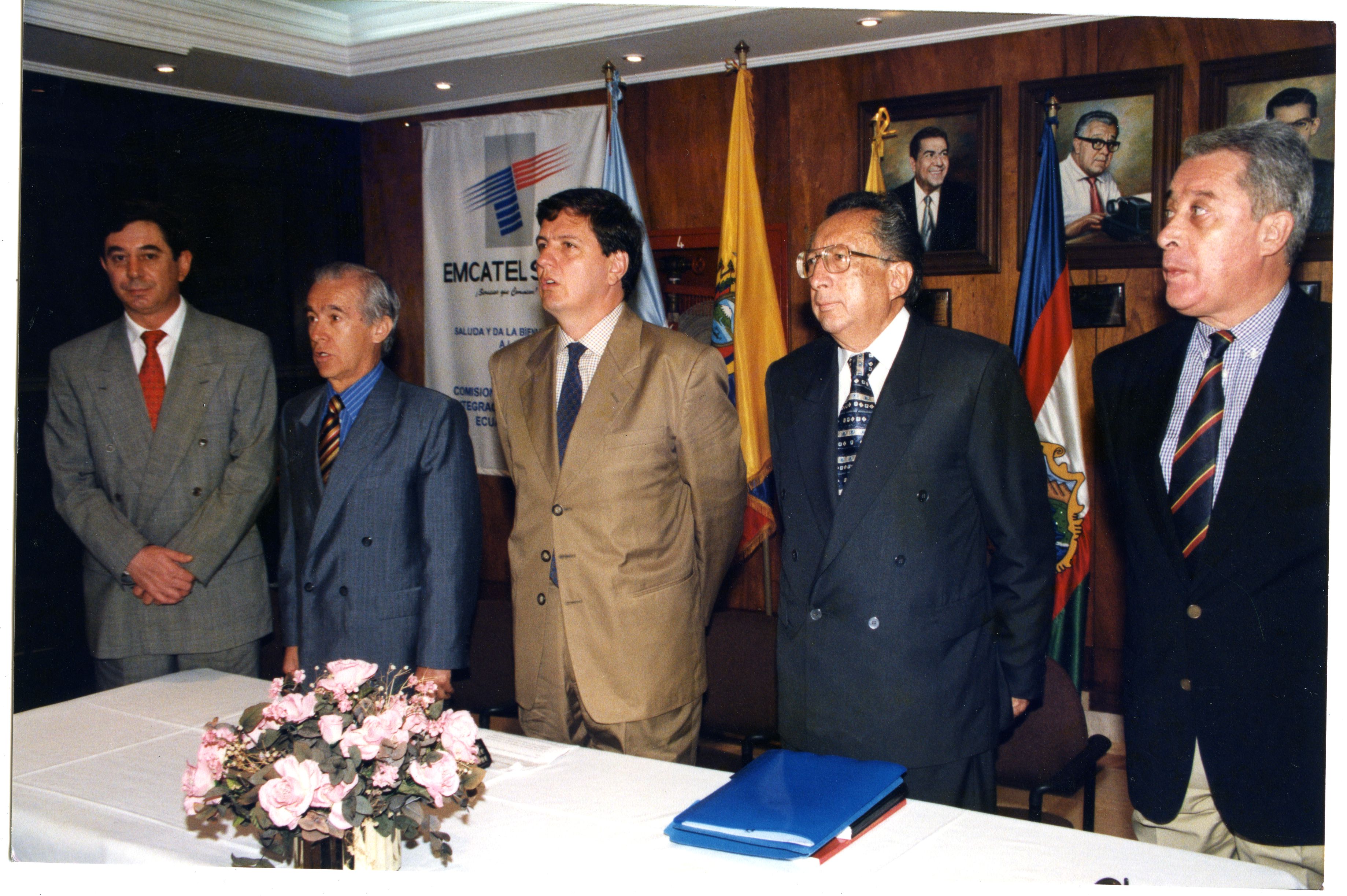 Foto de José Francisco Mejía parado en medio de otros funcionarios en la Convención de Vecindad de Colombia con el Ecuador.