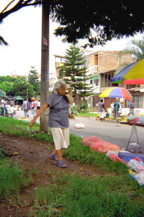 Girón Casadiego, T. M. (2005). Imagen tomada en exterior, donde se puede apreciar una mujer caminando por un parque hacia un puesto de venta de un mercado ambulante. Santiago de Cali: Biblioteca Departamental Jorge Garces Borrero.