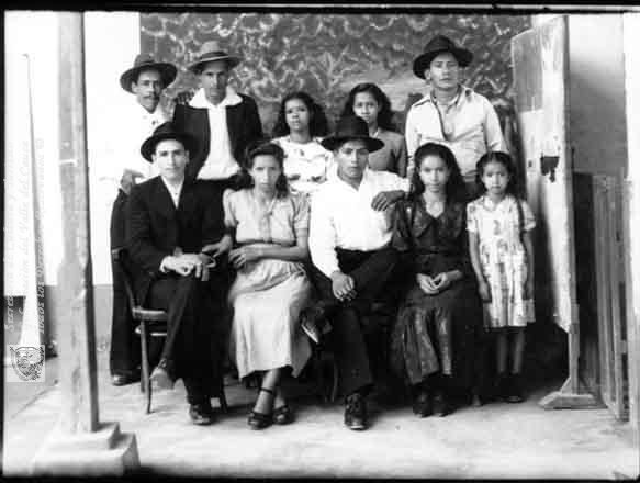 Foto estudio familiar. Se observa el vestuario de la época y el fondo empleado para realizar la fotografías que se aprecia en la imagen. Toro, 1933.