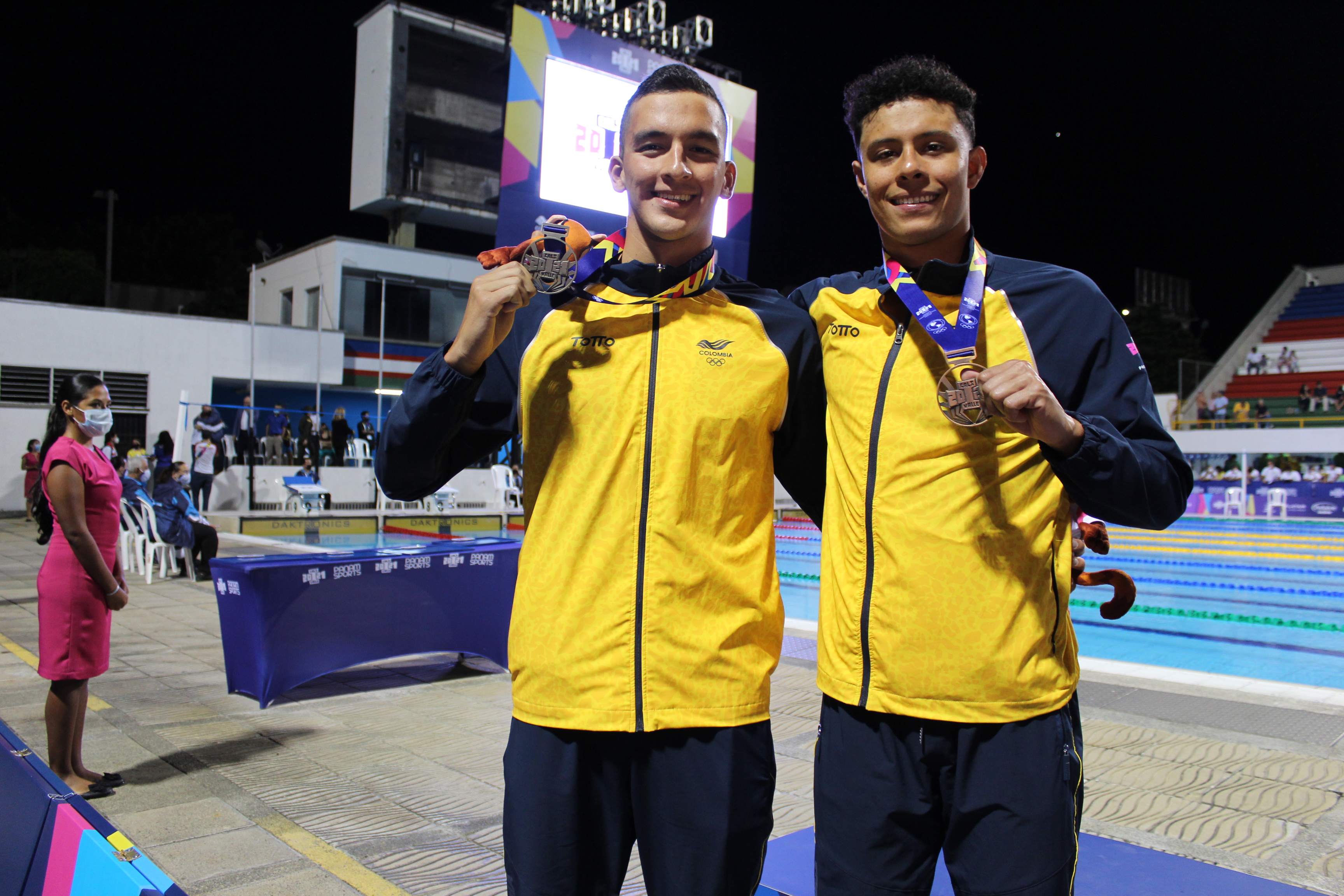 Juan Manuel Morales Restrepo y Santiago Angel Corredor Zabala ganadores en la disciplina natación en los "I Juegos Panamericanos Junior", llevados a cabo en la ciudad de Cali.