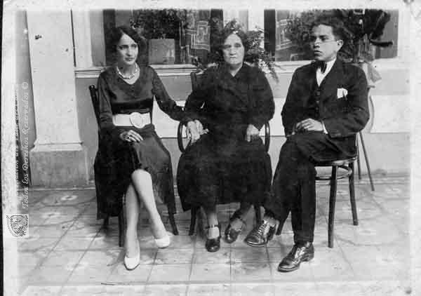 Hermanas Martínez y Faustino Fernández. en uno de los corredores de la casa. Cali. 1931.