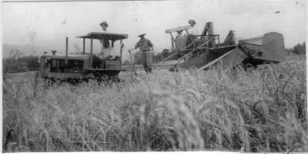 Máquinas recolectoras y empaquetadoras de arroz en la Hacienda Arroyohondo