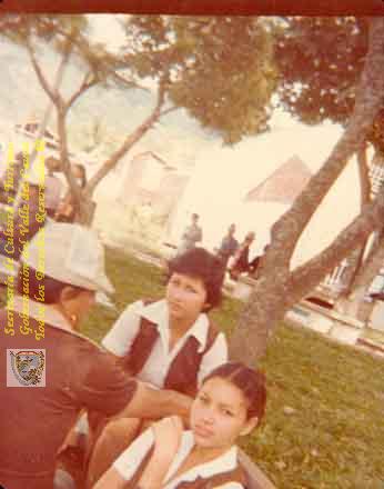 Iván Pérez, Lilián Bedoya y Armando Grisales. Los parques públicos, son el principal centro de recreación y encuentro de las pequeñas ciudades, en el Vallle del Cauca. Ansermanuevo 1979.