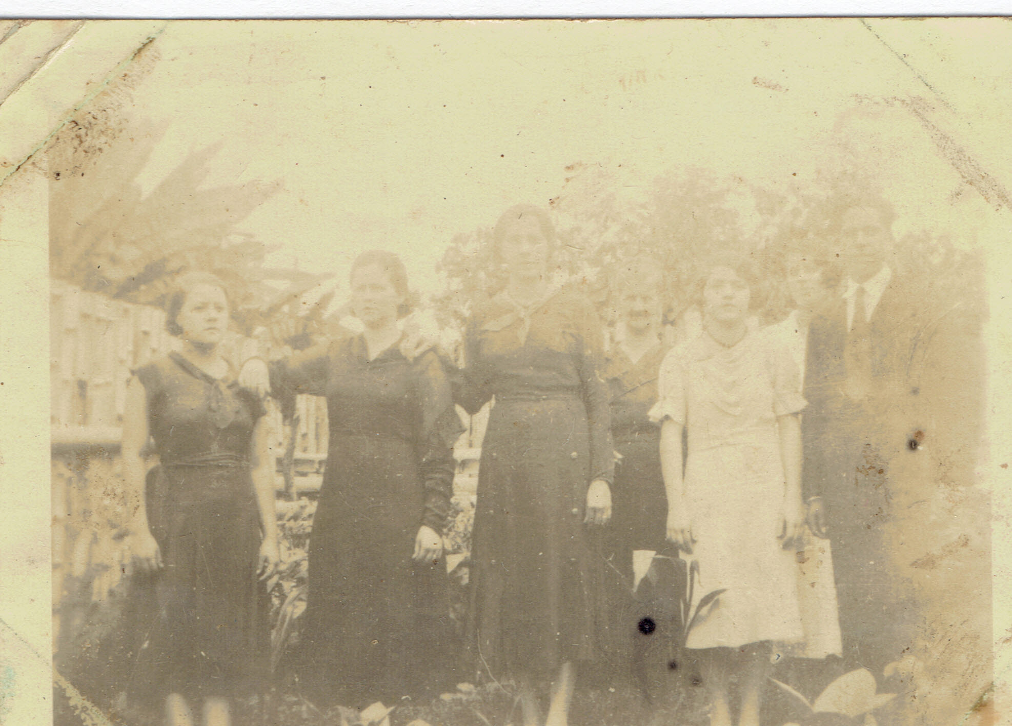 Casa de la familia Alvarado. Se aprecia la señora Teresa Alvarado, Otras personas sin identificar
