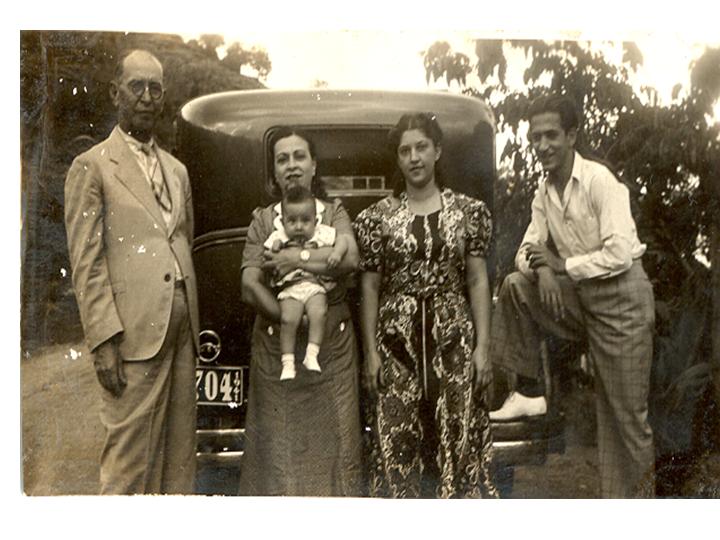 Familia Guerrero Suárez, de paseo en el auto familiar a los alrededores de la ciudad. Santiago de Cali, 1941.