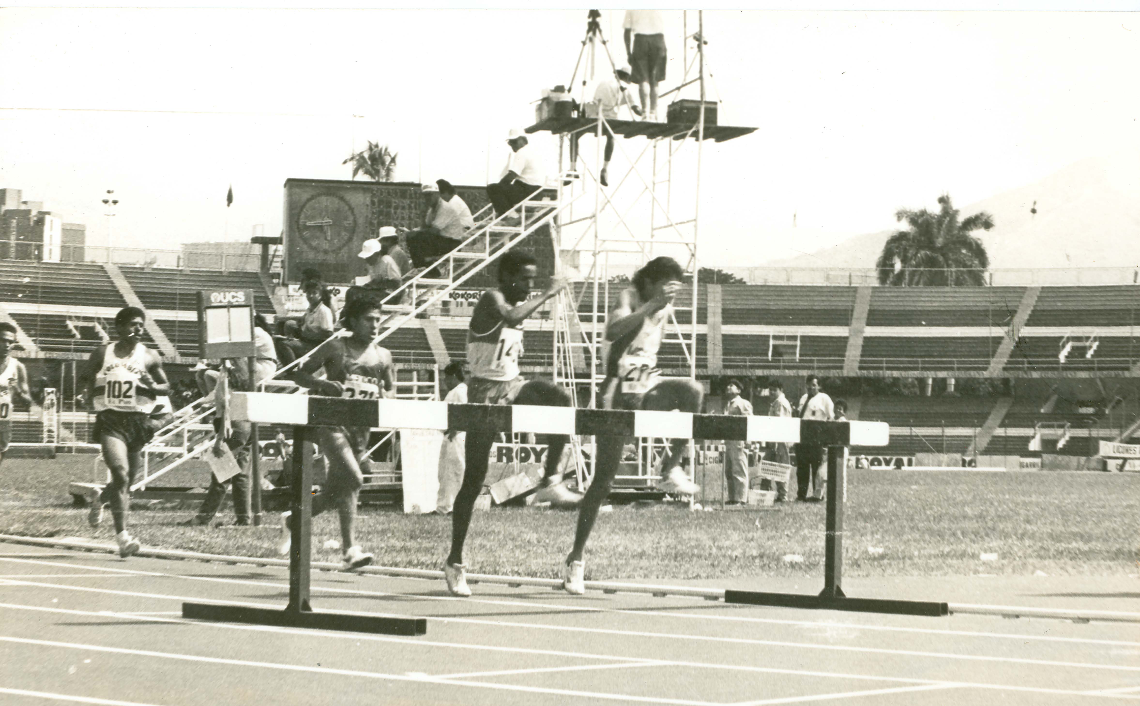 Diario de Occidente (1990). Atletas vallecaucanos durante prueba.. |Santiago de Cali.: Biblioteca Departamental Jorge Garcés Borrero..