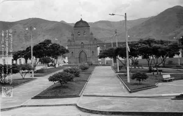 Panorámica del Parque de la Ermita, al fondo la capilla. Roldanillo, fecha aproximada . 1960.