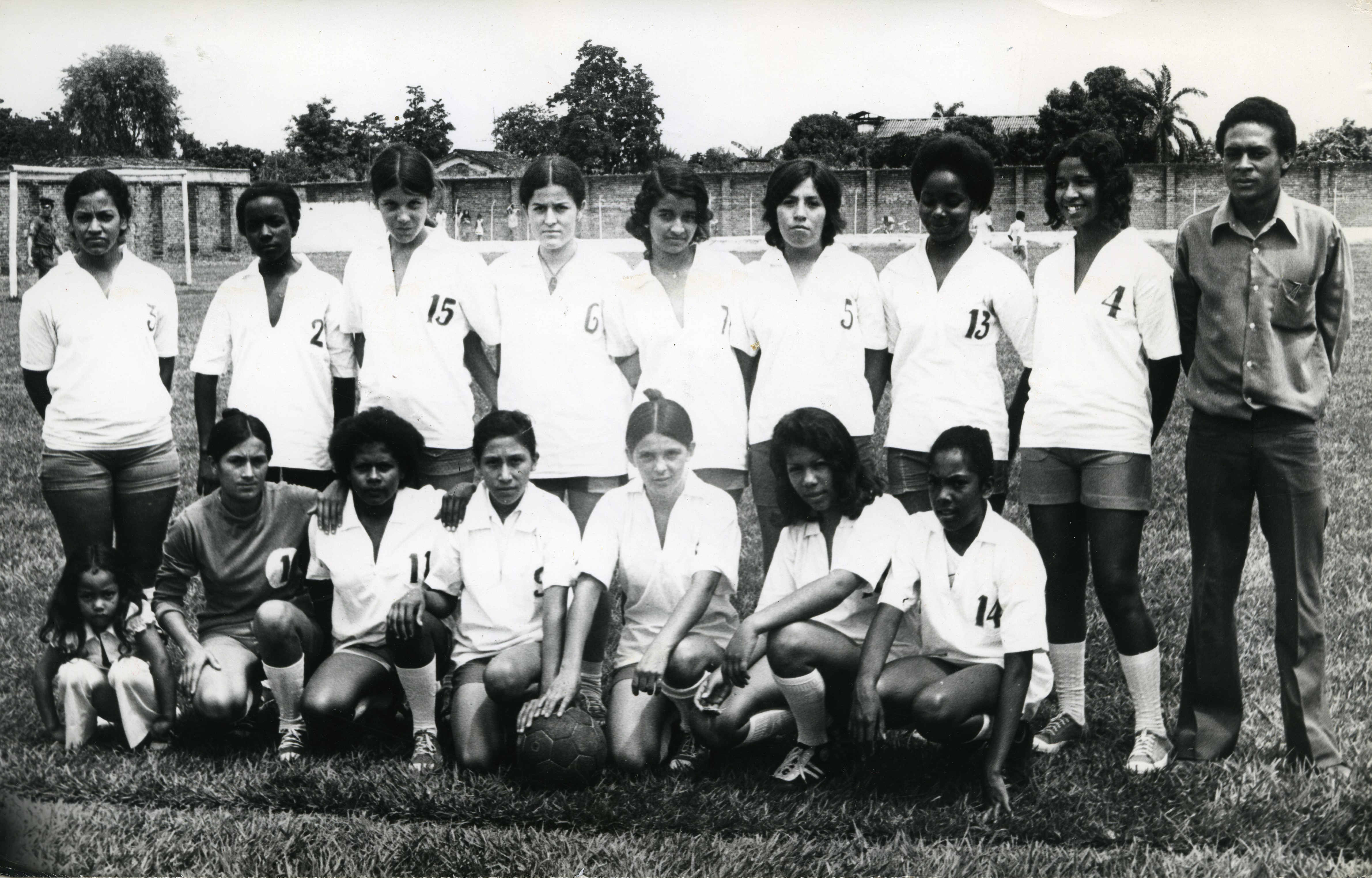 Equipo de fútbol femenino en el corregimiento de Placer, El Cerrito. Al reverso de la fotografía dice:" Equipo femenino (…) de El placer campesino"