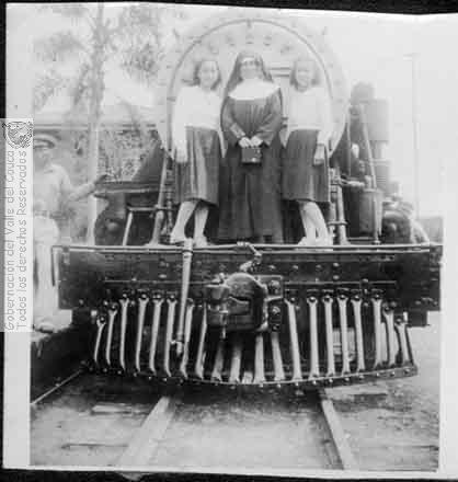 s. n., s. n., s. n. & s. n. (1950). Estudiantes y monja docente en la locomotora del tren & 600799. CARTAGO: Biblioteca Departamental Jorge Garces Borrero.