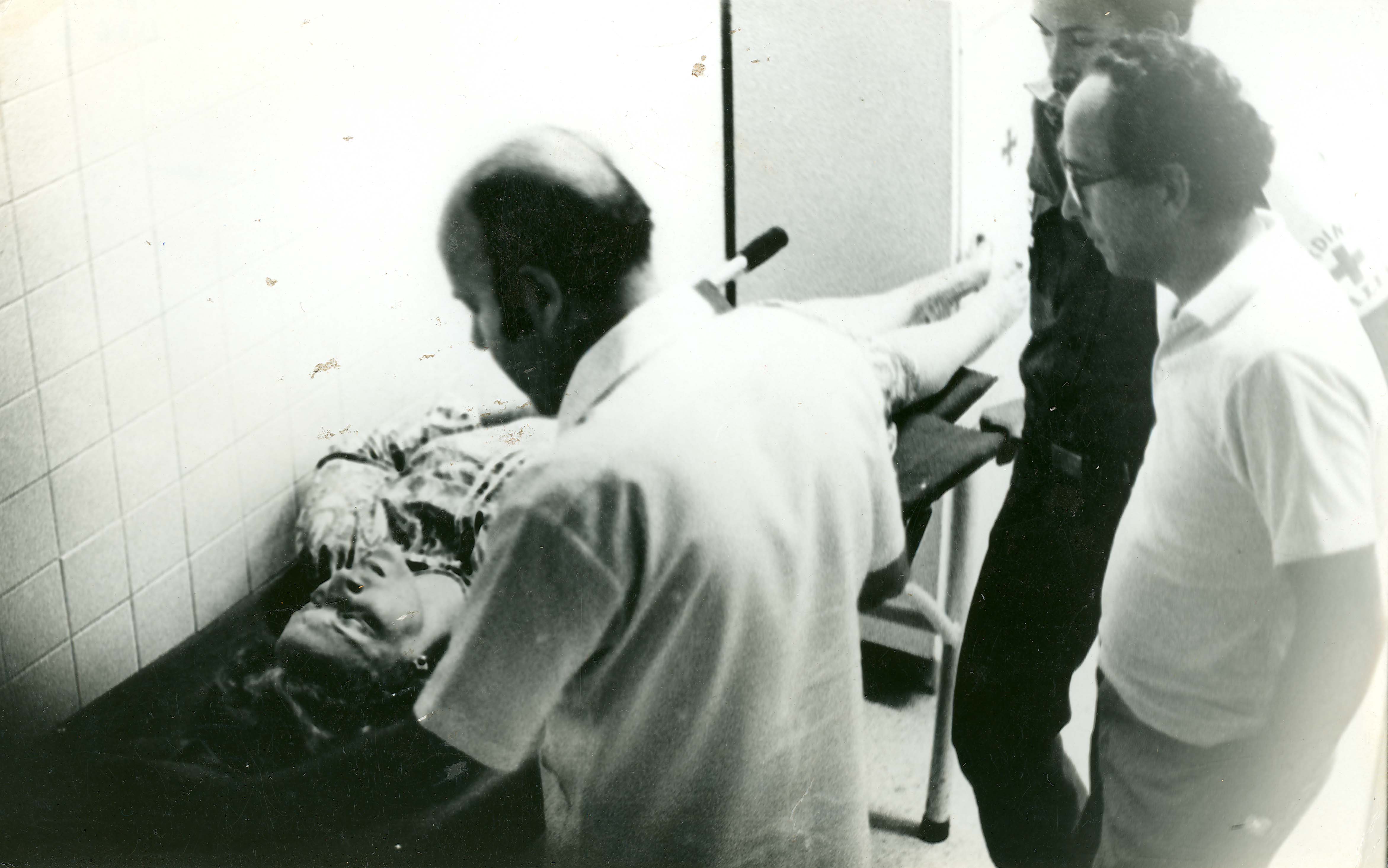 Diario Occidente (1984). Doña beatriz Uribe Borrero, atendida en una enfermería. Santiago de Cali: Biblioteca Departamental Jorge Garcés Borrero.
