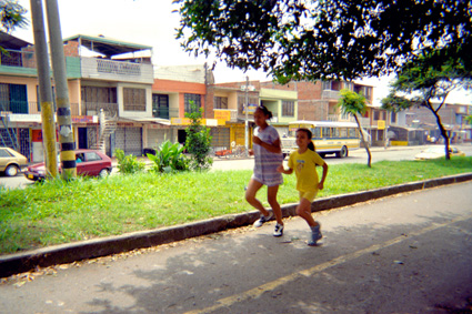 Tenorio Valencia, V. (2005). Imagen tomada en exterior, donde se puede apreciar una ciclo vía, por la que transitan dos mujeres jóvenes trotando. Santiago de Cali: Biblioteca Departamental Jorge Garces Borrero.