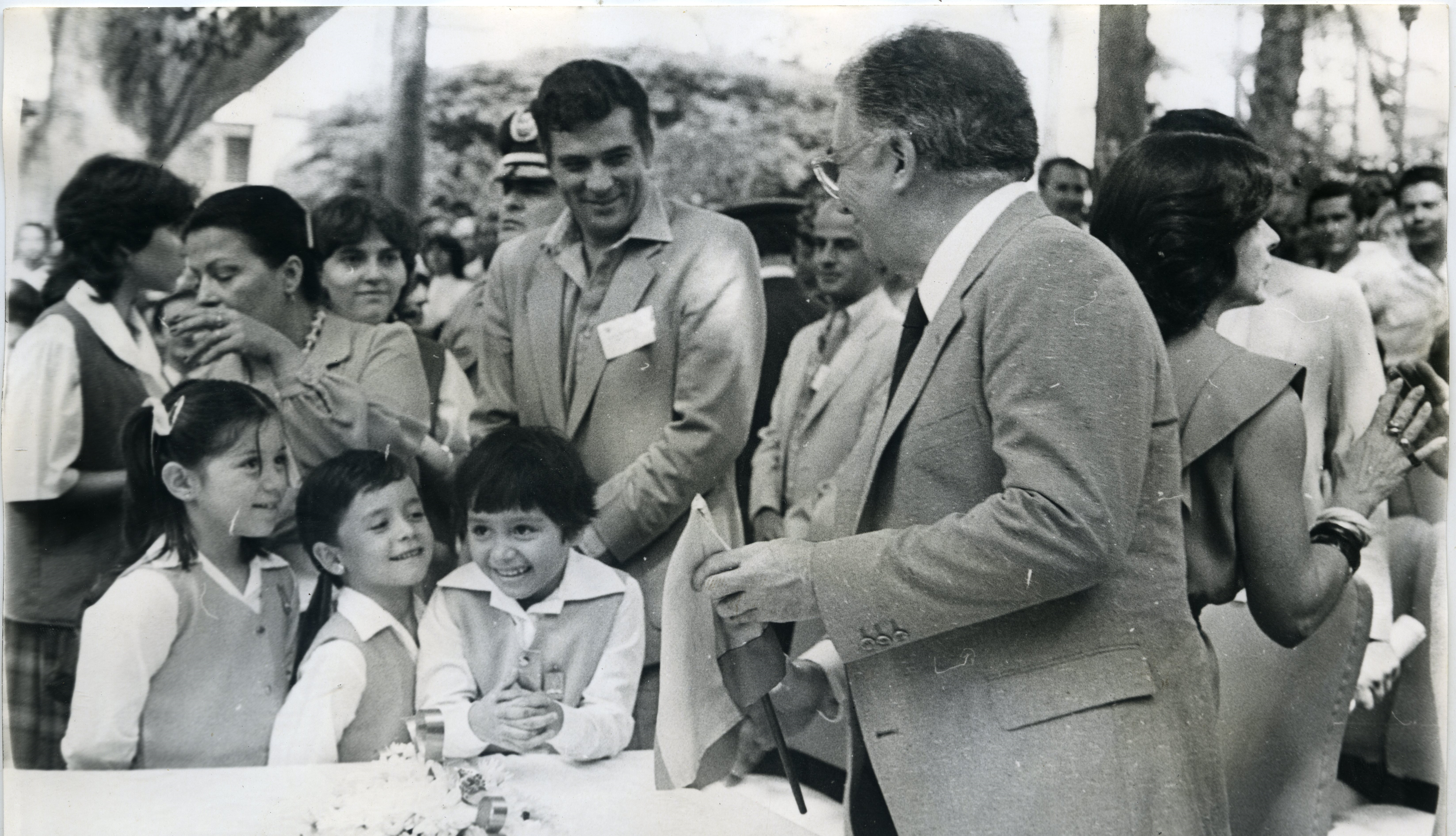 | dc.description.abstract | Presidente Belisario Betancur Sonriendo a tres niños antes de firmar acta de integración entre Cartago y Pereira | spa |