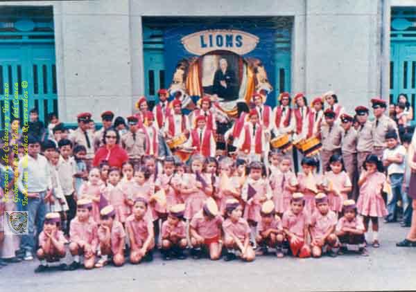 La profesora Myriam Vargas con el kinder Pablo VI del Club de Leones del municipio.Esta clase de fotos son recordatorios históricos para los planteles, y se convierten también en recordatorios de las familias. Calima-Darien,1975