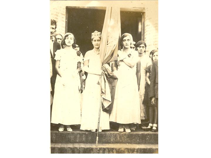 Blanca Julia Lince, al centro, reina del arroz; en compañía de Olga Tascón, a la derecha y de Lilia Valle a la izquierda. Ginebra, fecha aproximada, 1930.