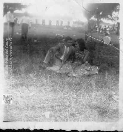 Los esposos Gil Mondragón en el parque del Corregimiento de Santa Elena. El Cerrito. C. 1940.