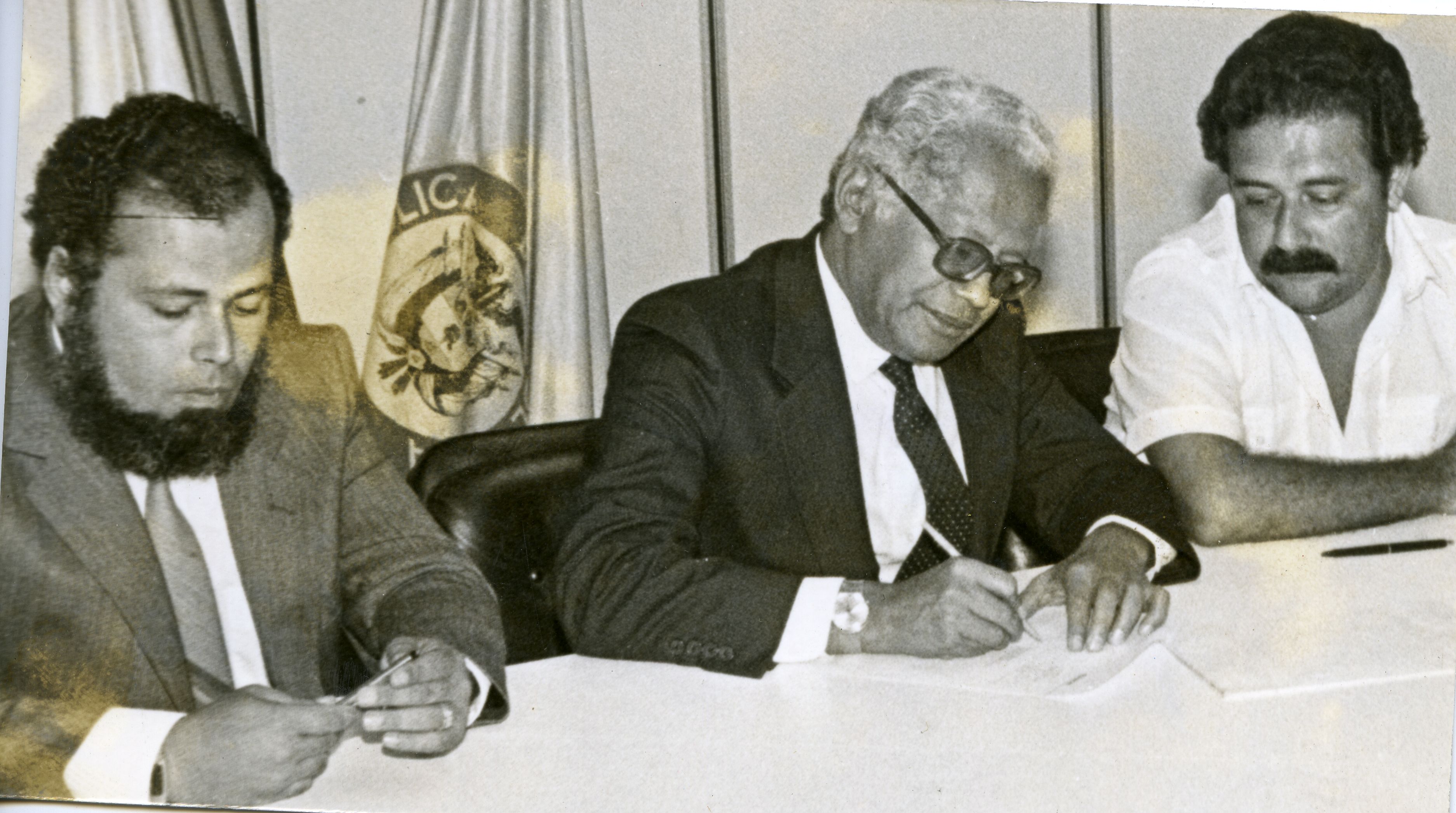 El alcalde Julio Riascos Álvarez, en su caracter de presidente de la junta directiva de la Empresa de Servicios Varios - Emsirva-suscribe la convención colectiva de trabajo