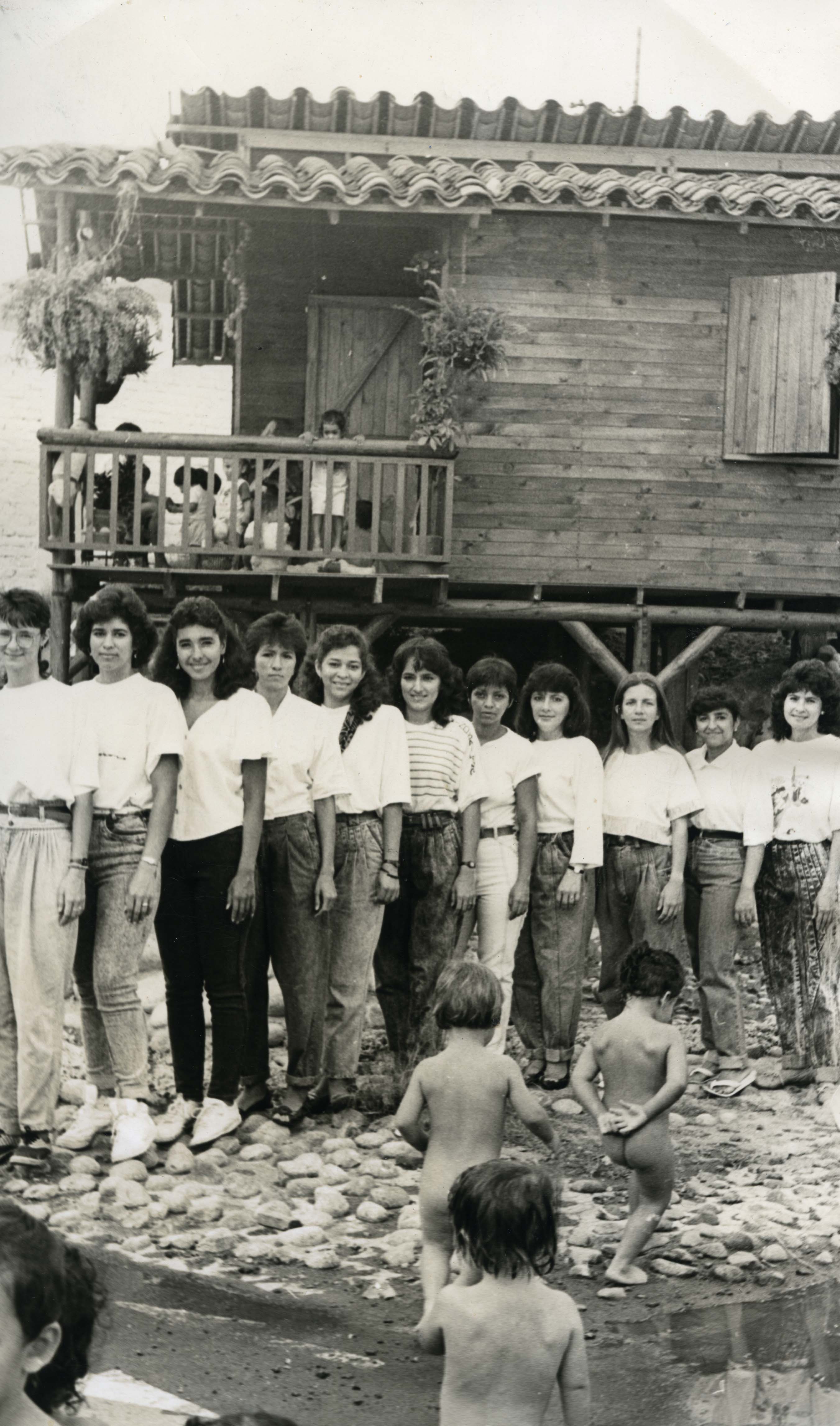 En el pie de foto dice lo siguiente: Clara Inés Fletcher, Yaneth Villarreal Barco, Magnolia Anturi Cuéllar, Leticia Toro Zuluaga, Lucrecia Tovar Barreto, Pastora Isabel Sarria, Maria Patricia Castillo Zabala, Méyver Rodríguez Barona, Luz Eugenia Chávez Porras, Stella Rodríguez Cuéllar y Ana Patricia Paz G., son las jardineras que atienden en forma permanente a los niños que se encuentran disfrutando de todos los beneficios que este hogar ofrece. Al fondo se aprecia la casita de muñecas.- El Archivo del Patrimonio Fotográfico y Fílmico del Valle del Cauca es responsabilidad de la Biblioteca Departamental del Valle Jorge Garcés Borrero, por convenio de cooperación suscrito con la Secretaria del Cultura Departamental, con el fin de aunar esfuerzos para su conservación, preservación y divulgación del Archivo entre la comunidad Vallecaucana, especialmente entre los estudiantes e investigadores que visitan la Biblioteca, propiciando el su uso y consulta permanente. La universidad Icesi es un colaborador en el proceso de difusión, facilitando la tecnología que permite la consulta de las imágenes.
