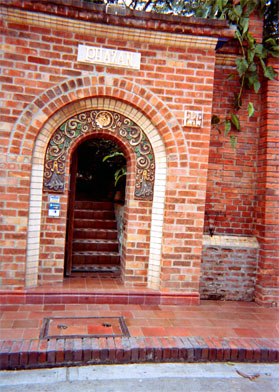 | dc.description | Primer plano. Pórtico casa del artista Phazan. Sobresalen arcos con arco interior verde y relieves dorados. Textura de ladrillo otorga simetría y composición. Plantas sobre costado enriquecen cuadro. | spa |