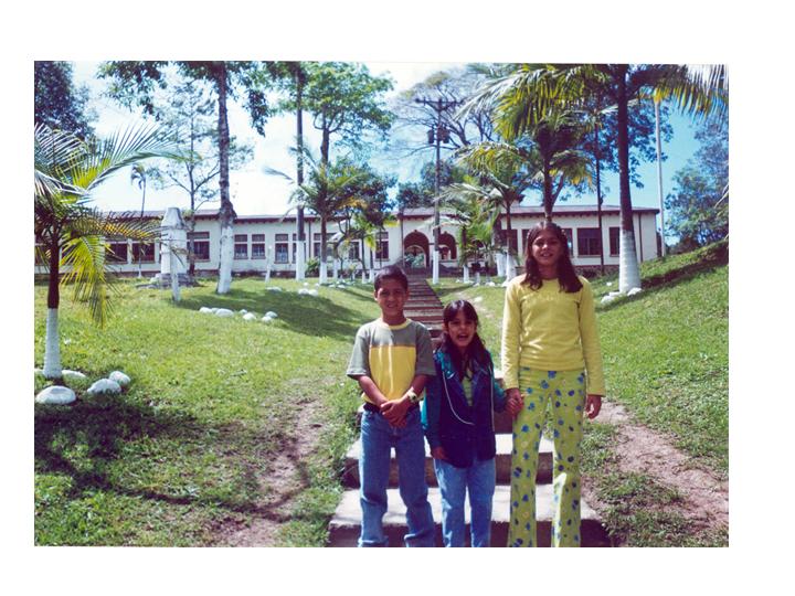 Juan felipe Castaño,Mónica y Luisa Fernanda López posando a la entrada principal del Instituto de Promoción Social.Versalles,2001