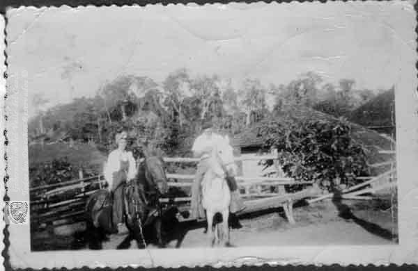 Paseo a caballo por las cercanías del municipio de Restrepo. Edelmira y José Maria Aristizabal. Restrepo. C. 1950.
