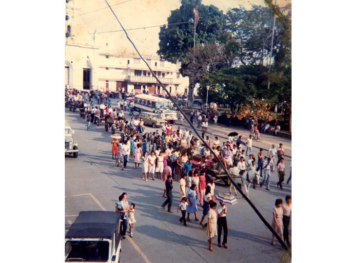 Cortejo funebre de un carretillero cuyo cuerpo es transportado en la carretilla que fuera de su propiedad. Sus compañeros de oficio estuvieron presentes. Pradera, 1985