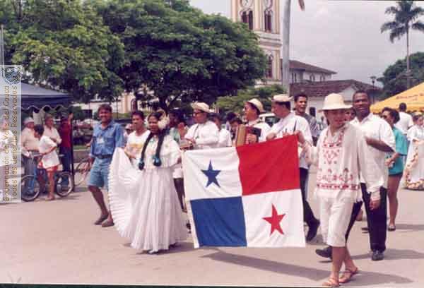 Delegación de la República de Panamá al festival Latinoamericano de Danzas Folclóticas en Guacarí. 1997.